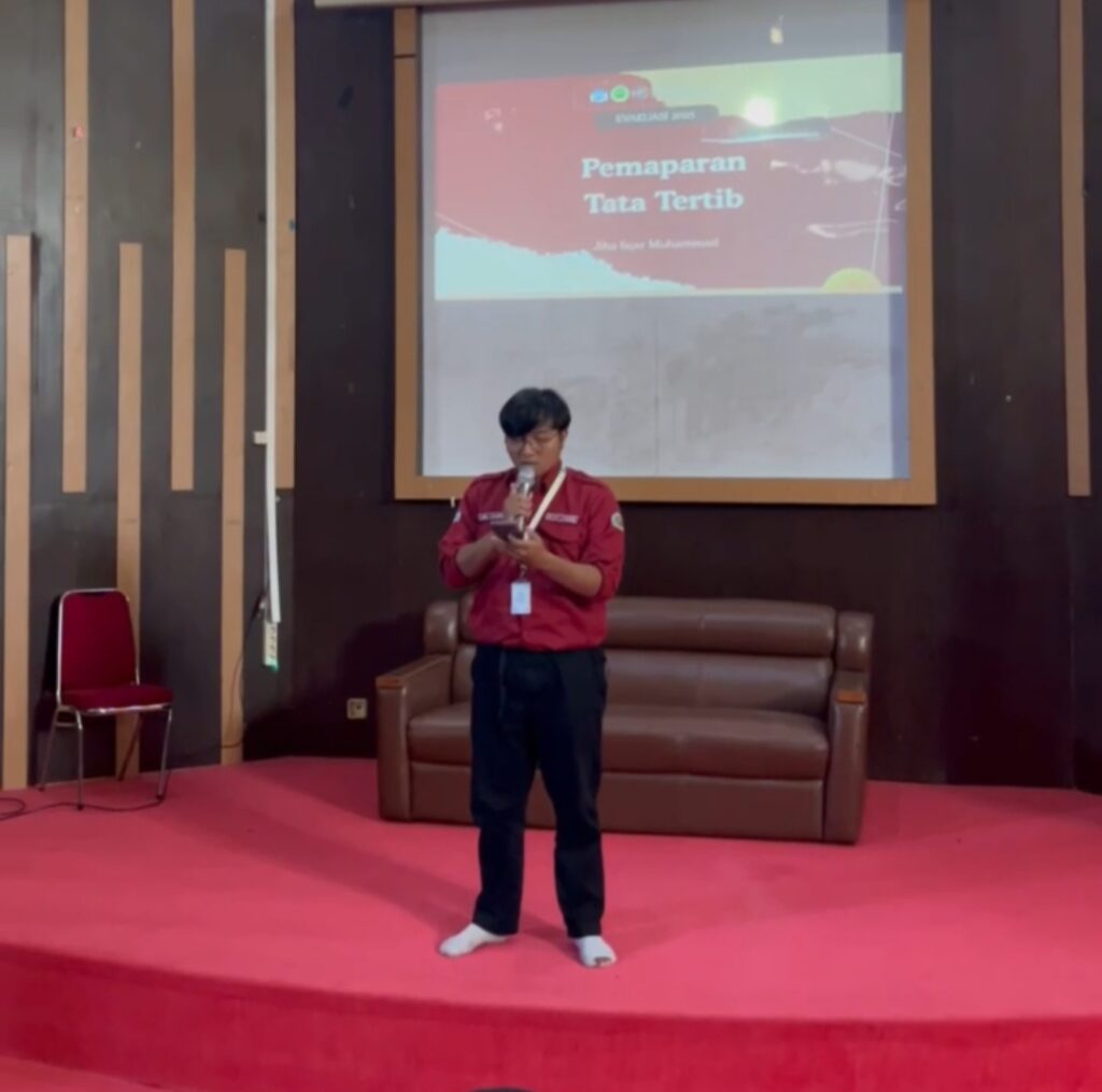 Selanjutnya yaitu sambutan-sambutan yang disampaikan oleh Ketua Pelaksana EVAKUASI 2025, Jasmine Putri Indrianti, dilanjut sambutan oleh Ketua Himpunan Mahasiswa Fisika (HIMAFI), M. Arief Rahman Hakim, dan sambutan oleh Ketua Program Studi Fisika, Bapak M. Nafian, M.Si., namun beliau berhalangan hadir.